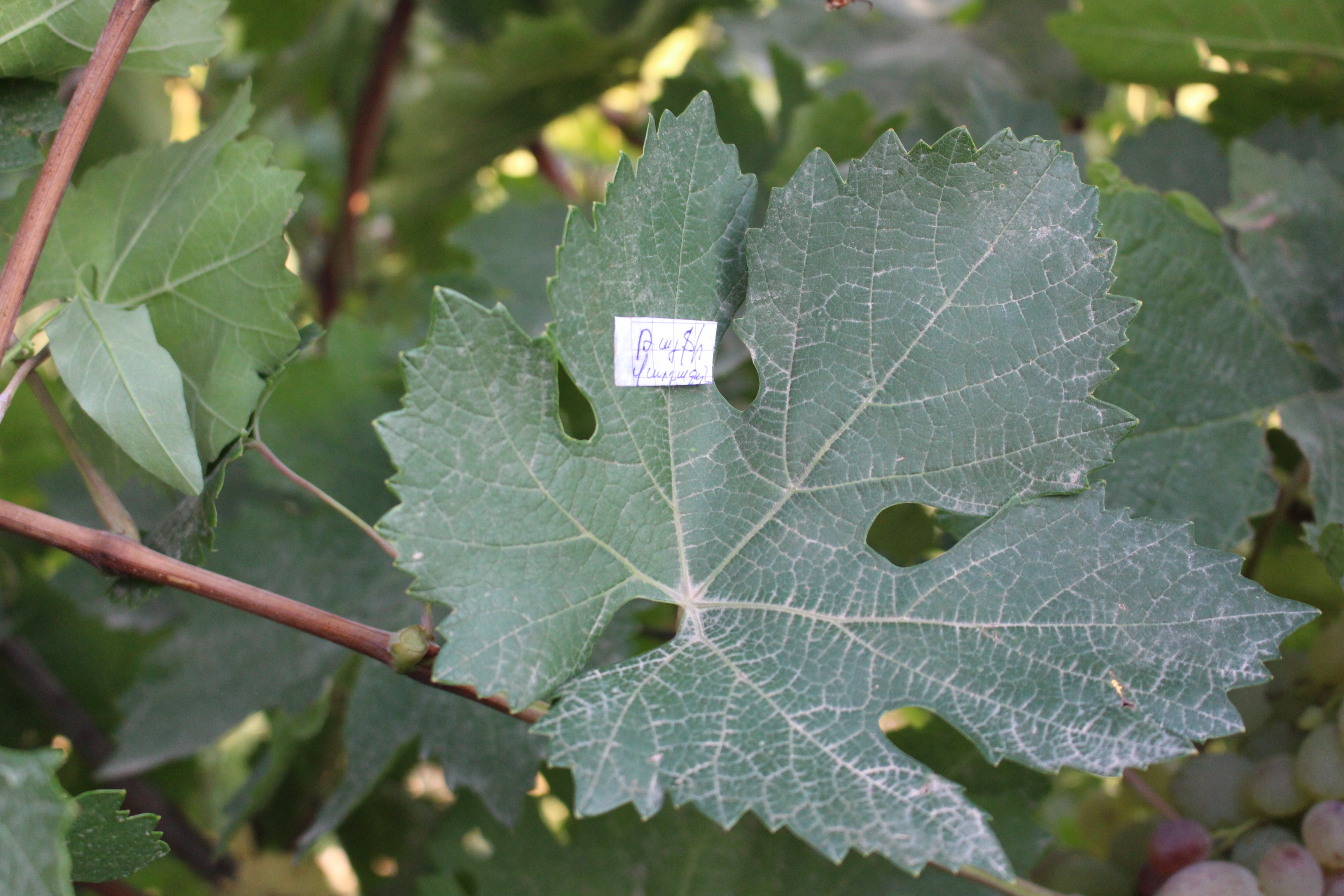 OIV 076 | Mature leaf: shape of teeth | teeth on the end of lobs are wide triangular and lateral teeth are triangular with rounded tip |