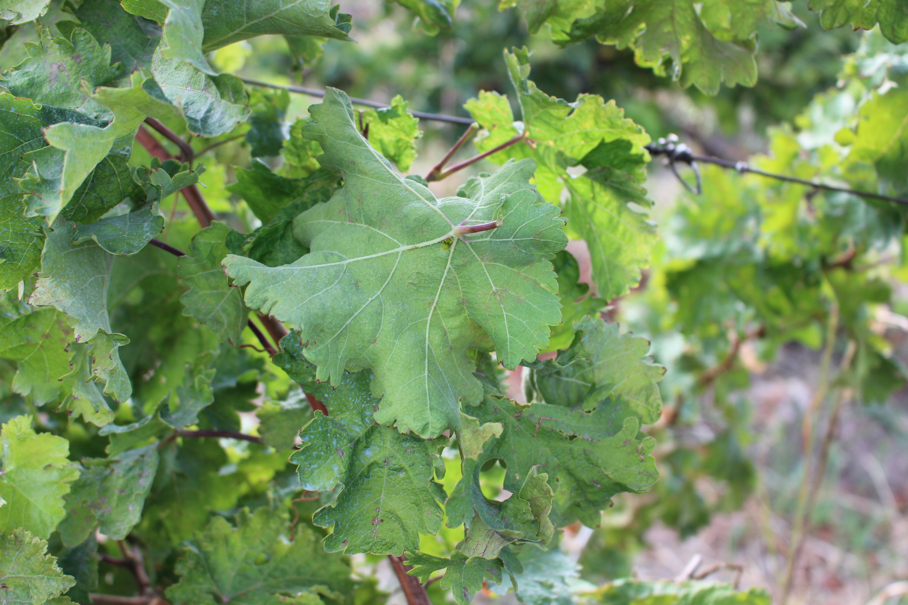Երիտասարդ տերև.. տերևաթիթեղի ստորին մակերեսի միջջղային հատվածների ոստայնանման թավոտություն (4-րդ տերև) |
